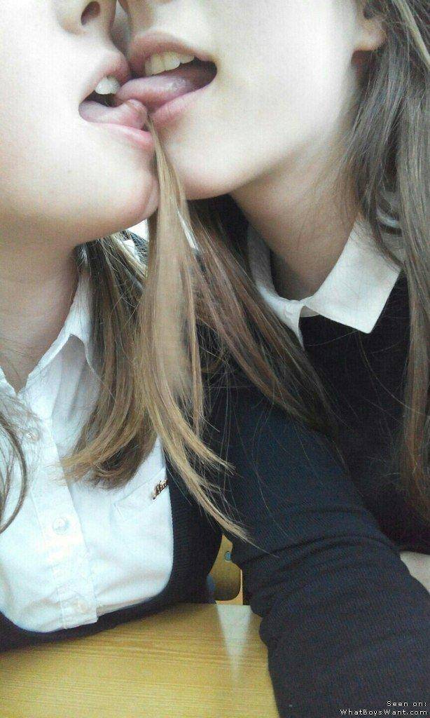 school girls tongue kissing. so hot.