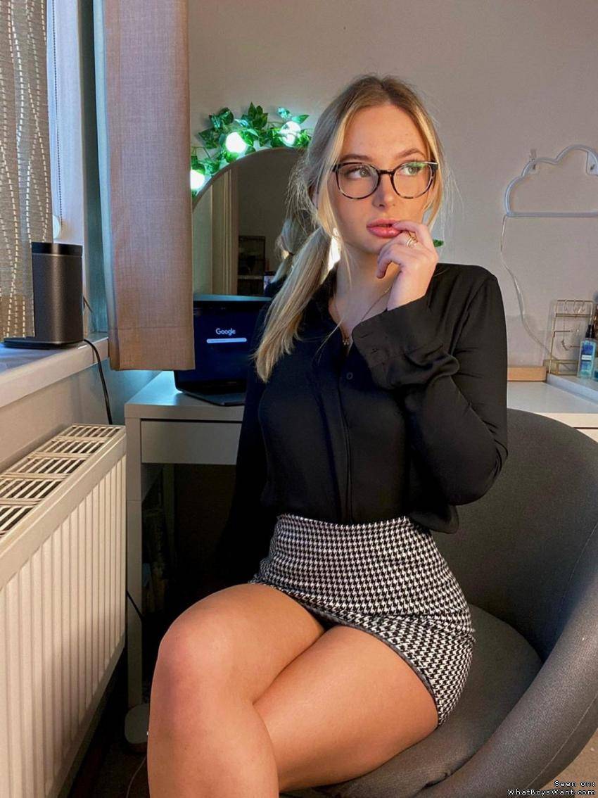 This tempting blondie's sexy skirt is of exactly perfect length!