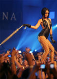 Rihanna (born Robyn Rihanna Fenty; February 20, 1988) is a Barbadian singer, model, fashion designer and philanthropist. She is the second artist, and first female, from Barbados to have received a Grammy Award[1][2][3] (the first being Jimmy Senya Haynes).[4] Rihanna is currently signed to the Def Jam Recordings label.[5] She has attained four Billboard Hot 100 number ones thus far ("SOS", "Umbrella", "Take a Bow", and "Disturbia"